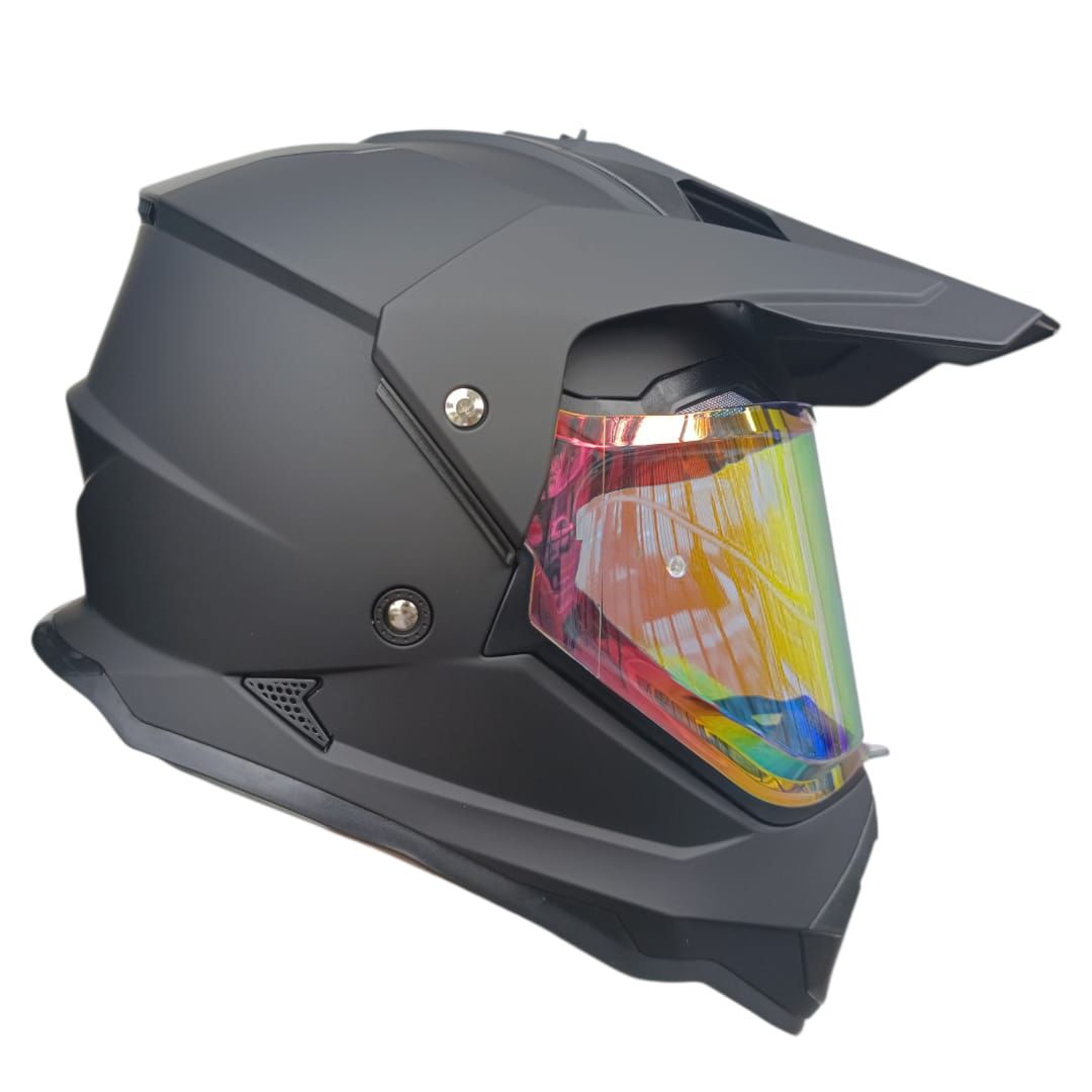 CASCO SOMAN CROSS M10 NEGRO MATE C/ VISOR REVO AZUL