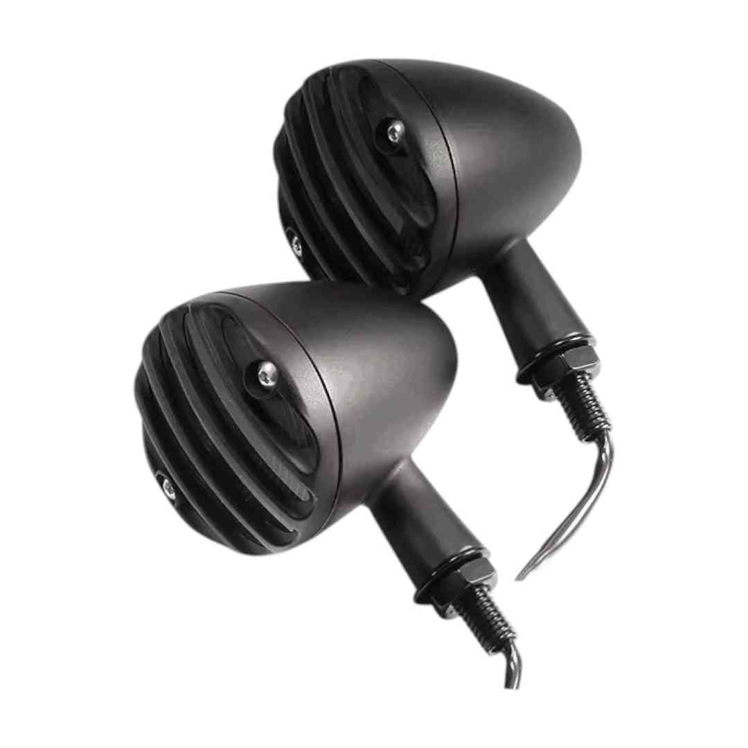 DIRECCIONALES CHOPPER LED DE ALUMINIO NEGRO MATE CON REJILLA