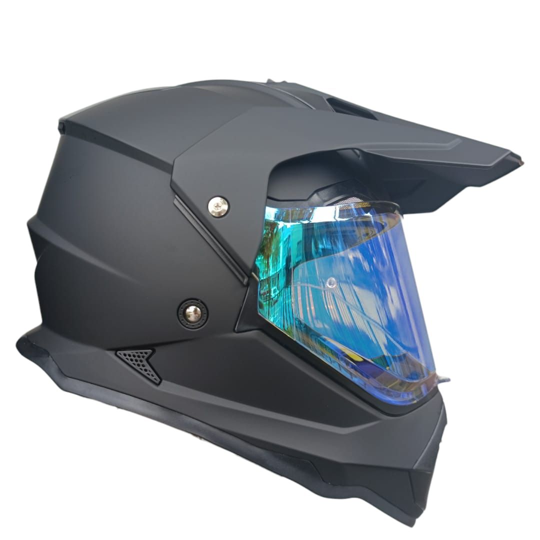 CASCO SOMAN CROSS M10 NEGRO MATE C/ VISOR REVO ROJO